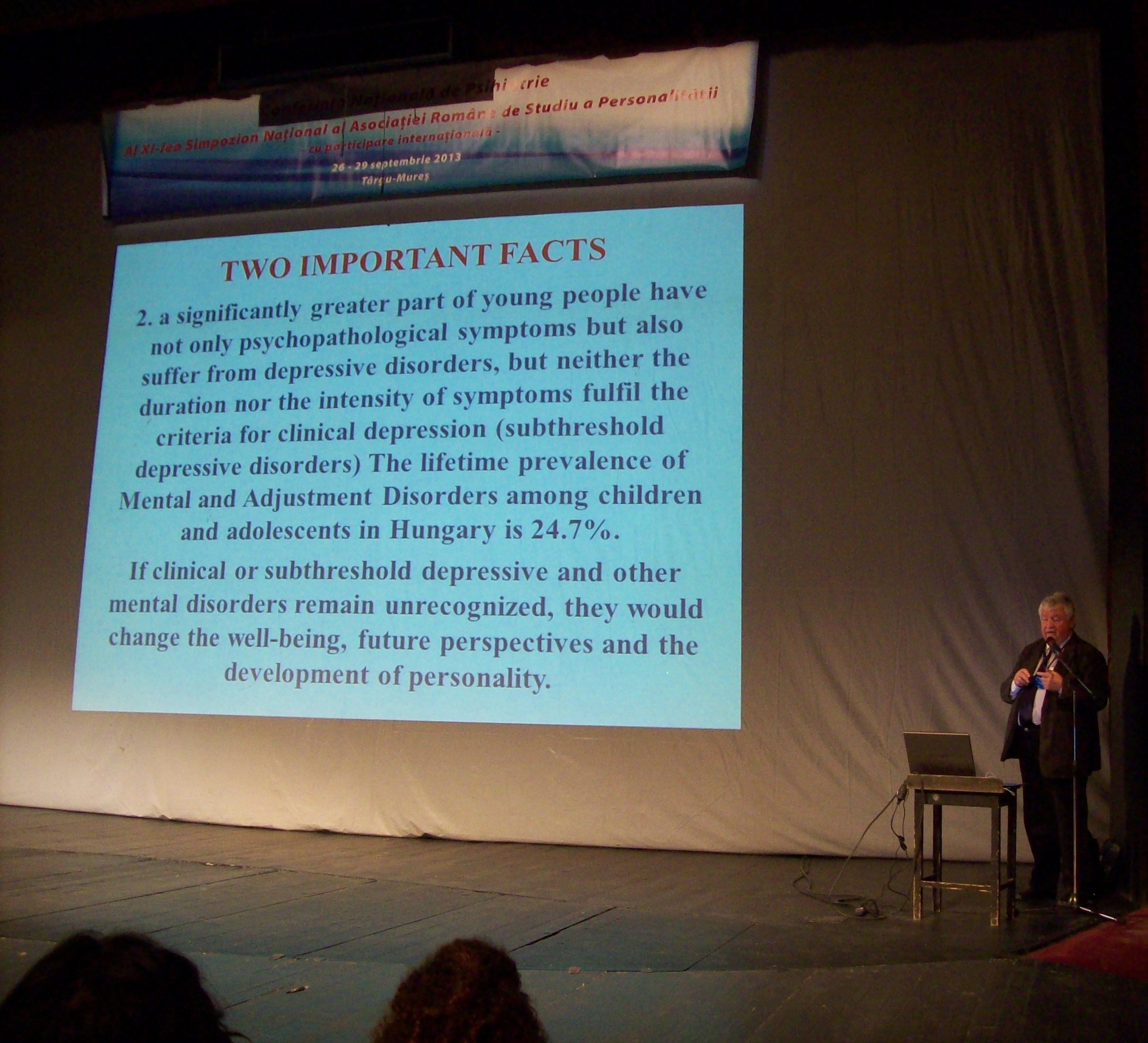 Am sa va expun pe scurt cateva impresii din prima zi a Conferintei de Psihiatrie care si-a propus sa arate, prin intermediul prezentarilor, stadiul la care fiecare psihiatru sau psiholog a ajuns cu studiul personalitatii, in sens largit, si a particularitatilor sale, in sens restrans.