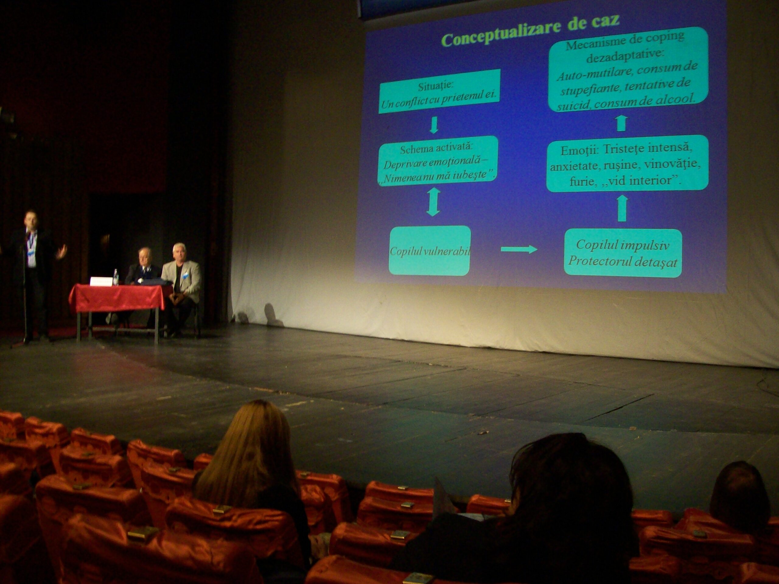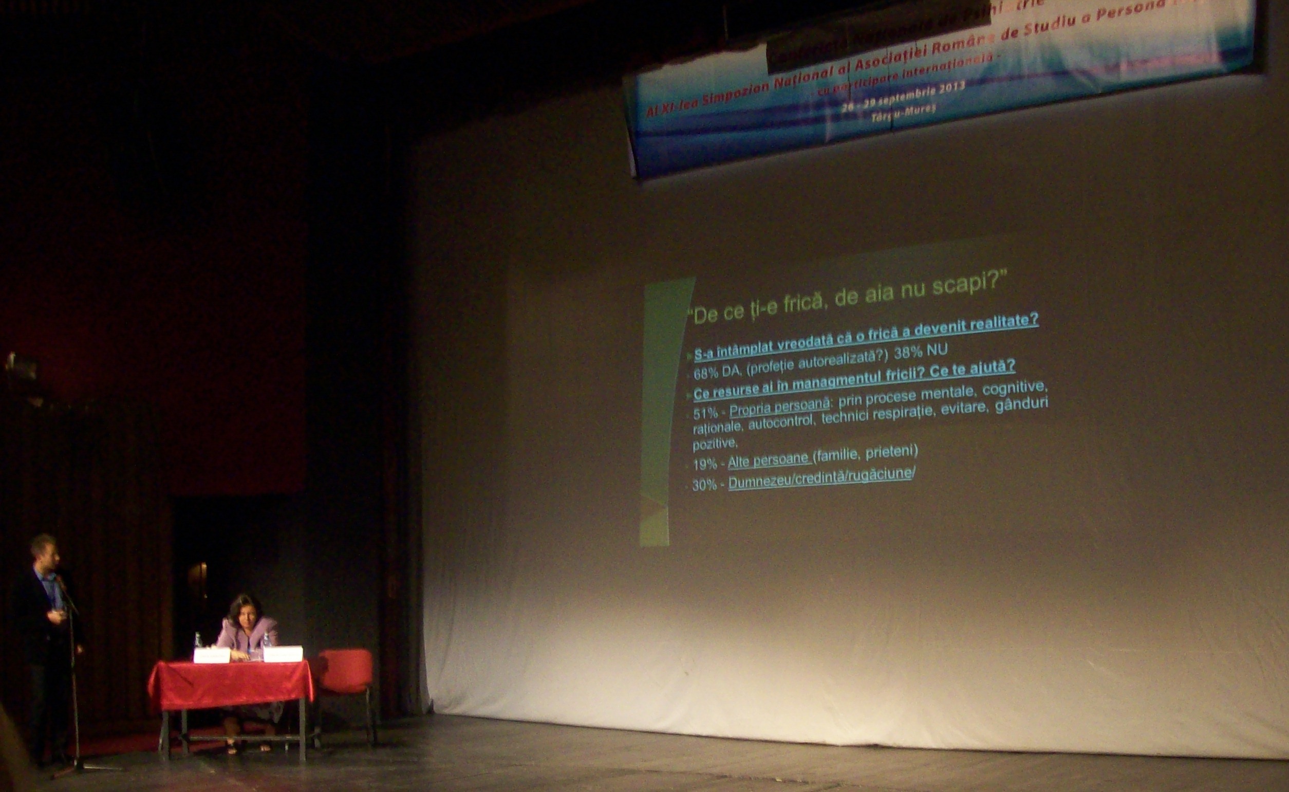 Revenind la lucrarile propriu-zise ale Conferintei, am remarcat caracterul teoretic si practic pus la punct al celor care au prezentat. Un lucru, insa, as sublinia: se bate moneda pe „stima de sine”, mai ales la persoanele cu narcisism, ca un construct care defineste… opinii si opinii. Dovedit irational inca din anii 80 daca nu ma insel, el detine o conotatie mult mai… eficienta (mai ales in practica). Cel putin din perspectiva paradigmei cognitiv-comportamentale (orientare care supara pe multi teoreticieni si practicieni de alte orientari, din cate am remarcat). Vezi mai multe aici: http://alinlesub.wordpress.com/2013/07/09/stima-de-sine-versus-acceptare-neconditionata-implicatii-psiho-sociale-de-la-cercetare-pana-la-interventia-psihoterapeutica/.