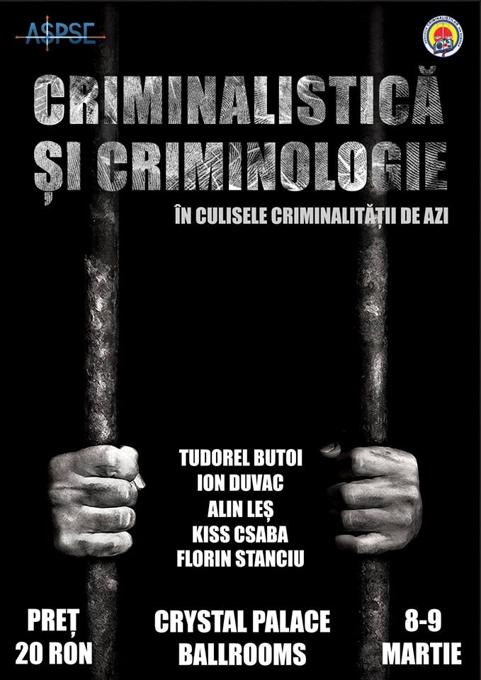 Am avut onoarea, bucuria si intelegerea de a prezenta, si in acest an, propriile rezultate ale documentarilor si cercetarilor efectuate. S-a intamplat cu ocazia invitatiei organizatorilor Conferintei nationale a studentilor ASPSE Bucuresti cu tema „Criminalistica si Criminologie. In culisele criminalitatii de azi”.