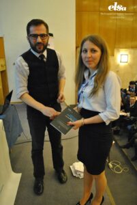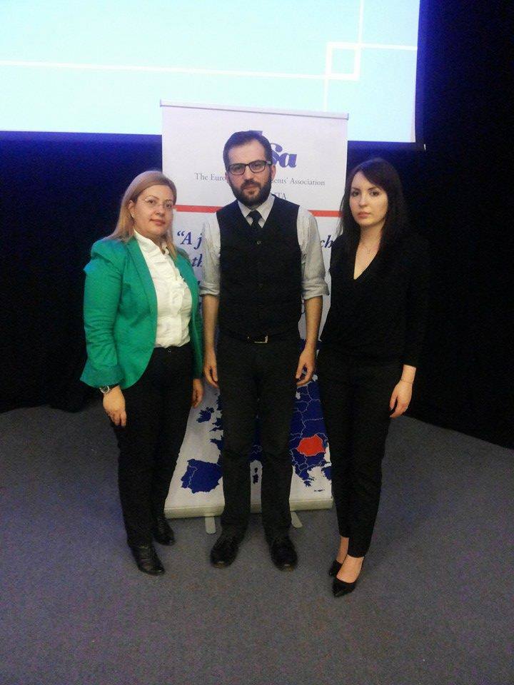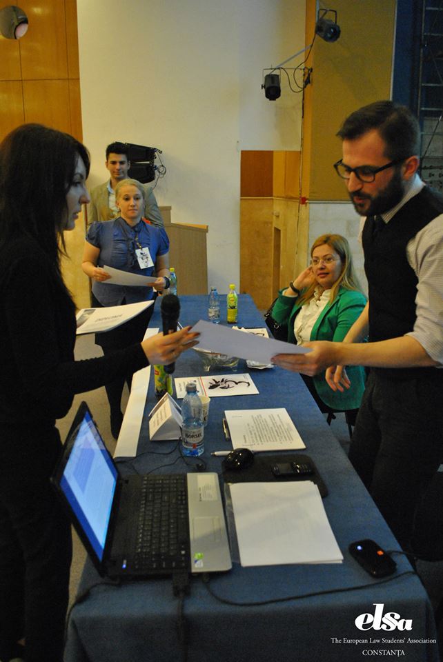 Încă de la intrarea pe poarta Universității am fost întâmpinați de reprezentantul ELSA, domnișoara Camelia Dobre, care ne-a urat bun venit. Eram așteptați. S-a început cu dreptul la Drept ( 😛 ) și asta ne-a bucurat suplimentar 🙂