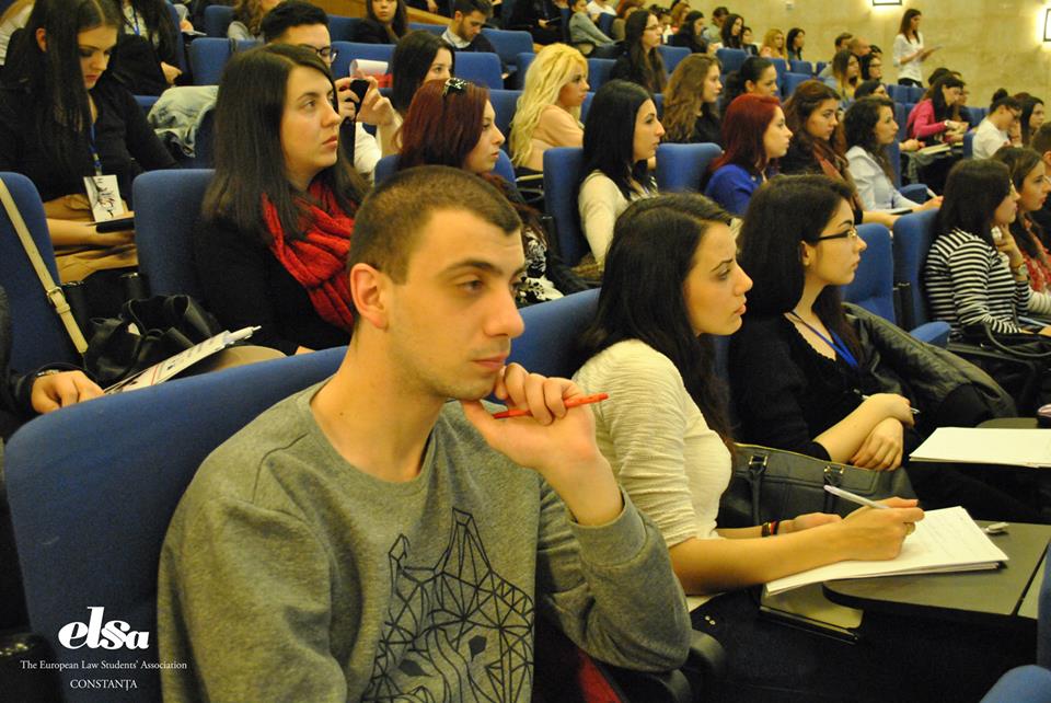 Aula Magna a Facultății de Drept și Științe Administrative a Universității „Ovidius” a fost plină (se observă din pozele ELSA Constanța). S-au înscris între 150 și 200 de participanți. Primul nostru feeling a fost că mesajul nu se va duce în van. Speram asta.