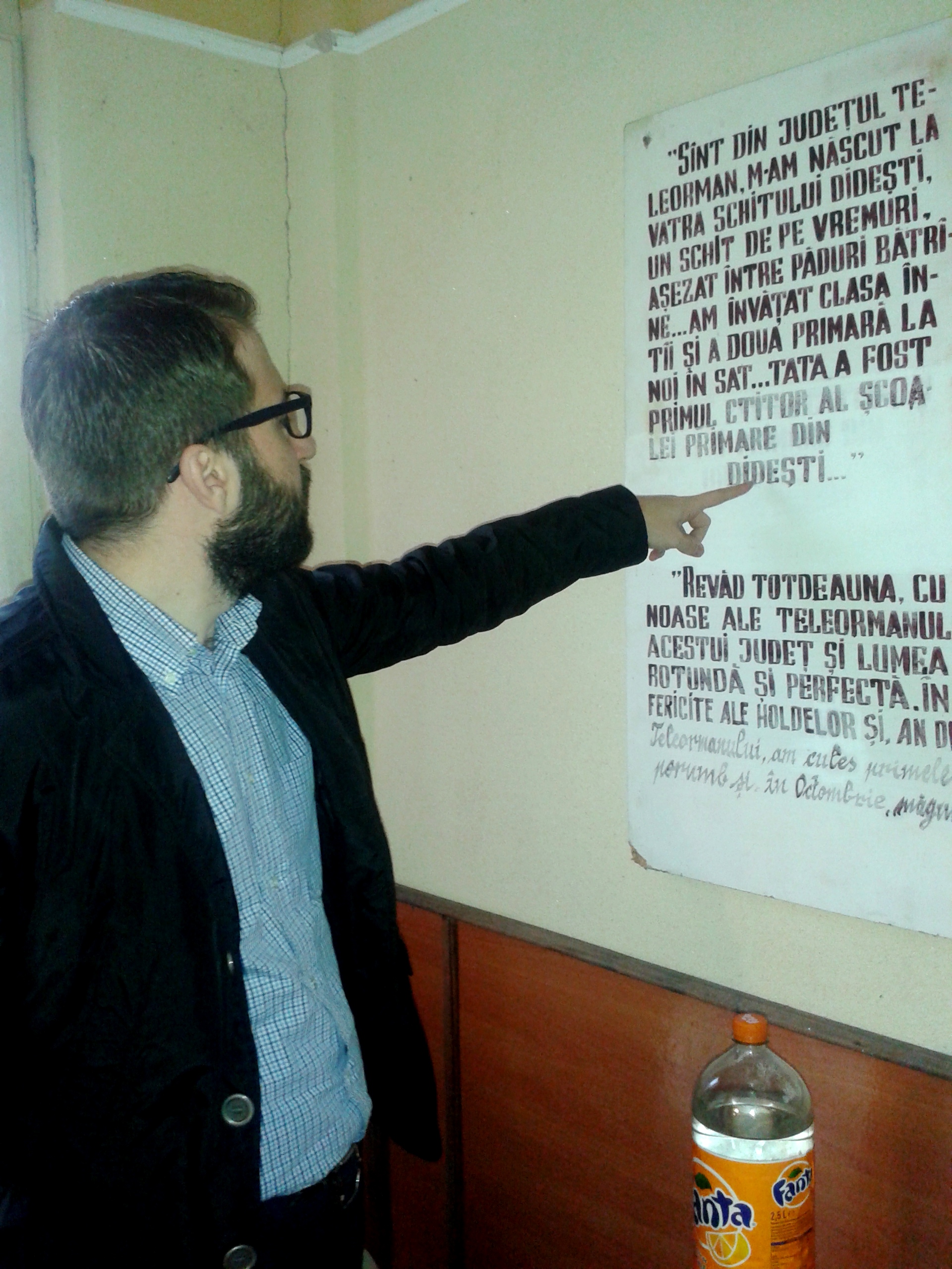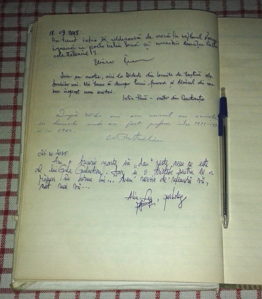 Mă documentez dinainte și aflu că la Didești există „Expoziția memorială Gala Galaction”. La prima strigare, îți imaginezi un flux de persoane care poate vizita, aproape la orice oră, expoziția. Nici pe departe! Era închis (pe bună dreptate, sâmbătă la 6 P:M). Grupul de copii aflat în curtea școlii mi-a spus clar că doar „doamna bibliotecar” are cheia. Unul dintre ei s-a oferit să mă îndrume până la casa bibliotecarei. Zis și făcut. Doamna bibliotecar aștepta pe altcineva, de la un anumit radio care dorea un reportaj. „Nu-i pentru cine se potrivește, îi pentru cine se ni