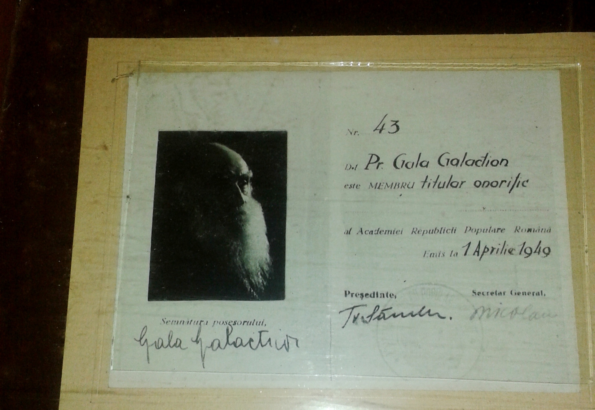 Ajungem. Ușa este deschisă „cu foc” de doamna bibliotecar și intru cu sfială. Cu sfiala spațiului în care știam că se află câteva obiecte de-ale celui care a devenit membru onorific al Academiei Române în 1949.