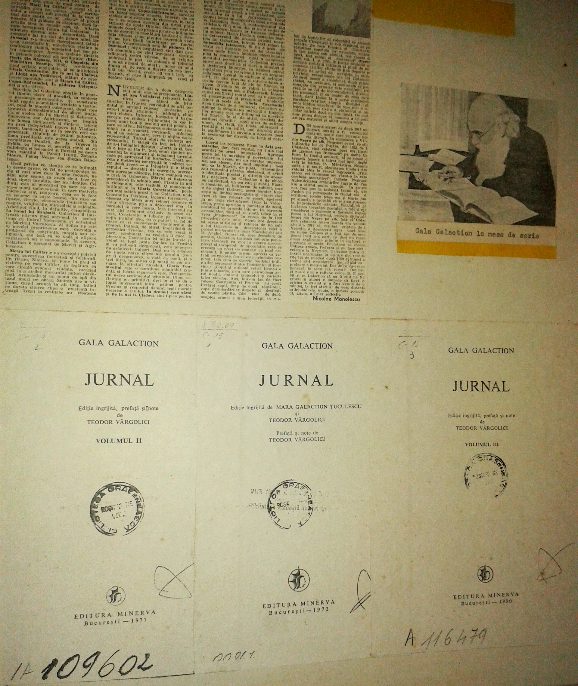 Ce mi-a mulțumit sufletul a fost că, în timp ce femeia bibliotecar expunea fragmente ce țineau mai mult sau mai puțin de Gala Galaction și activitatea lui, rulam în fața ochilor viața lui și personalitățile cu care a intrat